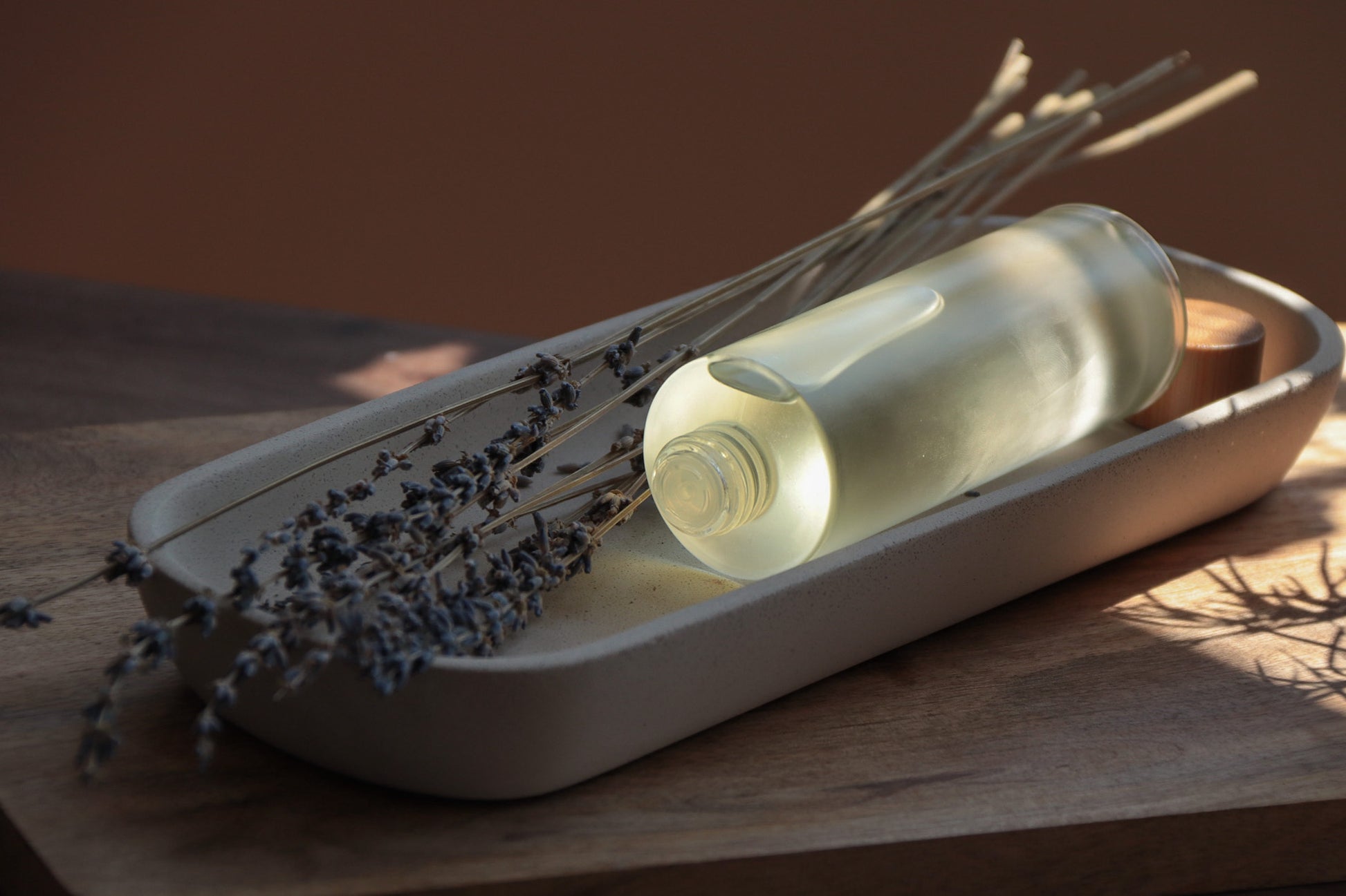 Carrier Oils: Grapeseed, Sweet Almond. Essential Oils: Rose, Rosemary, Thyme, Eucalyptus.