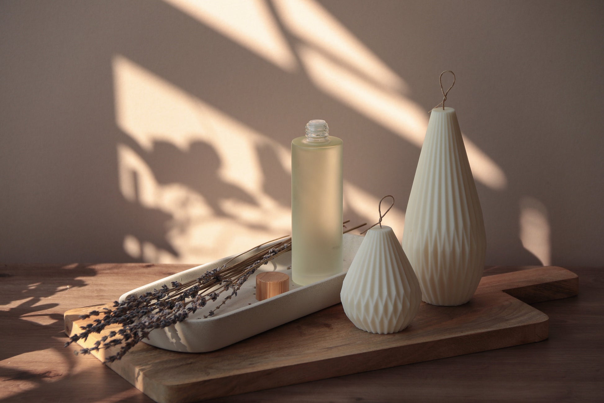 Our 100ml Bottles are 14cm in height, our large Candles are 6 inches tall, 280g and our small Candles are 3.5 inches and 140g.