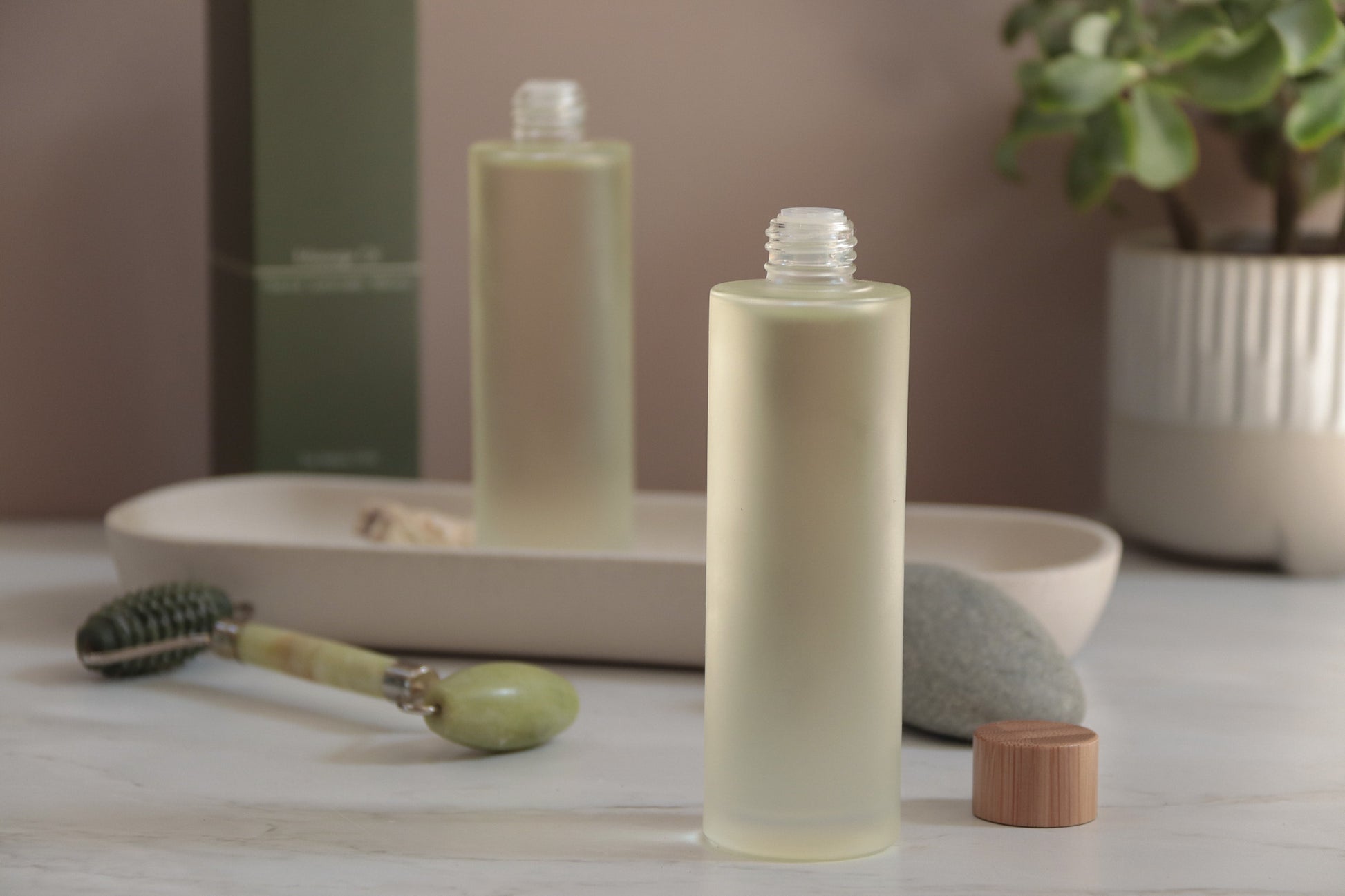100% Recyclable Frosted Glass and Bamboo in Cardboard packaging. Organic and Cruelty Free ingredients.